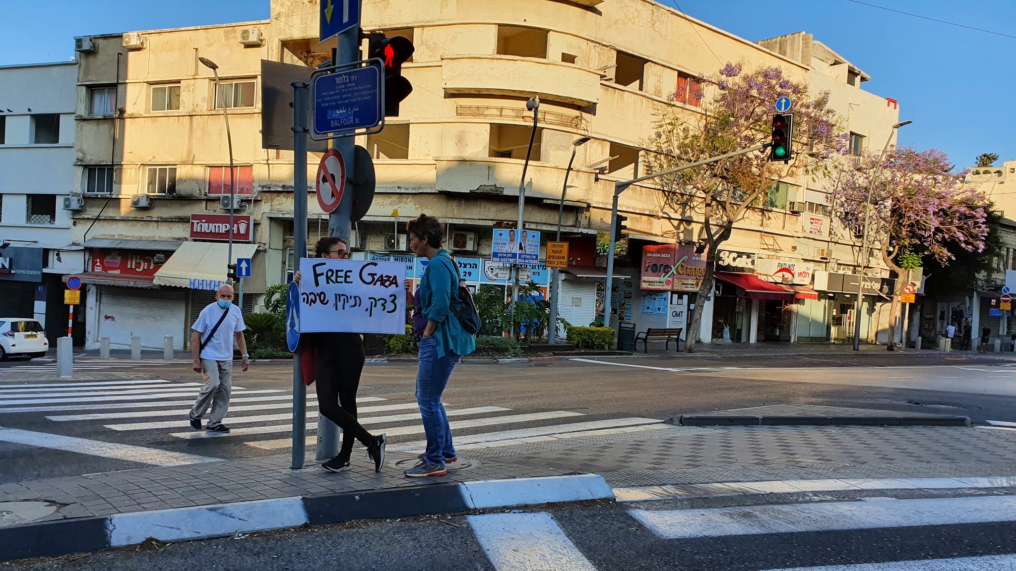 This Jewish woman carried her sign to be better seen by drivers. It says: “Free Gaza. Justice, fixing, Right of Return”