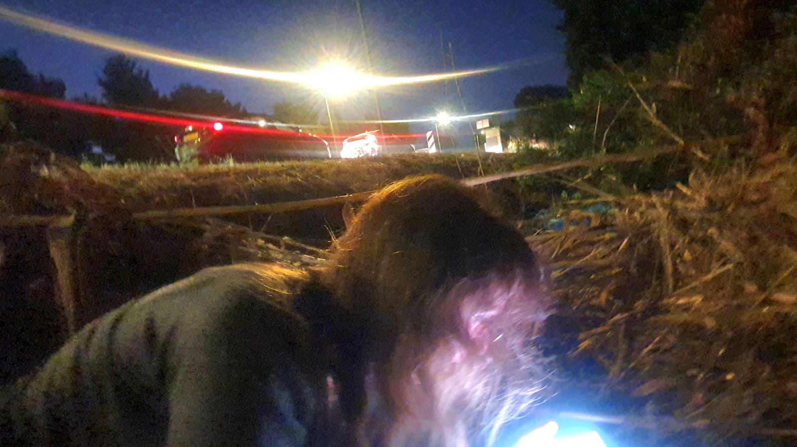 We were on the road, nowhere near any kind of shelter. We did what other drivers did – stopped the car on the side of the road and ran down a small incline as far away from the cars as we could get. There was a ditch that provided some semblance of protection so we laid down and covered our heads, as the Home Front Command instructs us to do. When missiles hit shrapnel flies up at an angle so the best bet is to be flat on the ground and cover your head.